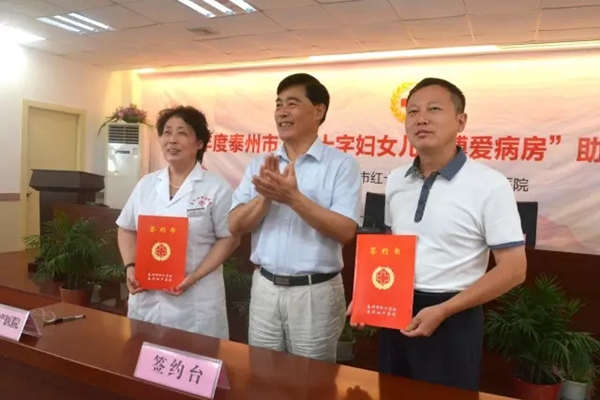 仪式上,市红十字会与泰州妇产医院现场签订项目合作协议。